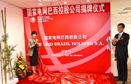 國家電網(wǎng)公司副總經(jīng)理舒印彪,國家電網(wǎng)國際發(fā)展有限公司總經(jīng)理孫金平、中國駐里約總領(lǐng)事陳小玲、國家電網(wǎng)公司有關(guān)部門和單位的領(lǐng)導(dǎo)、國家電網(wǎng)巴西控股公司巴西員工代表,以及中國國家開發(fā)銀行巴西工作組、中石化巴西公司、南非標準銀行、PN律師所、匯豐巴西銀行、羅蘭.貝格等公司代表參加了儀式。舒印彪副總經(jīng)理和陳小玲總領(lǐng)事共同為國家電網(wǎng)巴西控股公司揭牌。
