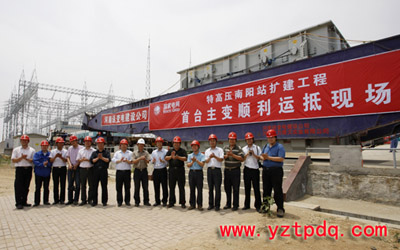 1000千伏晉東南-南陽(yáng)-荊門(mén)特高壓交流試驗(yàn)示范工程擴(kuò)建工程南陽(yáng)站首臺(tái)主變于5月30日下午從周口港啟運(yùn),經(jīng)過(guò)四天公路運(yùn)輸,于6月3日12時(shí)18分運(yùn)抵施工現(xiàn)場(chǎng),打通了南陽(yáng)站主變運(yùn)輸?shù)耐ǖ?,吹響了工程電氣主設(shè)備安裝的沖鋒號(hào)。