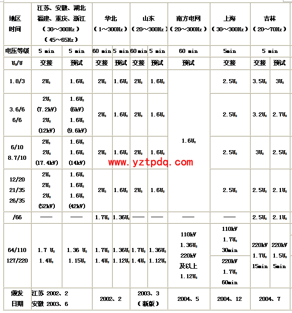 國內部分地區(qū)(?。┰囼炿妷簶藴?/b>