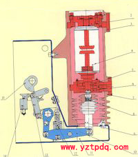 目前真空斷路器毫無(wú)例外地采用對(duì)接式接觸方式。動(dòng)觸頭碰上靜觸頭之后就不能再前進(jìn)了,觸頭接觸壓力是由每極觸頭壓縮彈簧(有時(shí)稱作合閘彈簧)提供的。所謂接觸行程,就是開關(guān)觸頭碰觸開始,觸頭壓簧施力端繼續(xù)運(yùn)動(dòng)至?xí)[終結(jié)的距離,亦即觸頭彈簧的壓縮距離,故又稱壓縮行程。