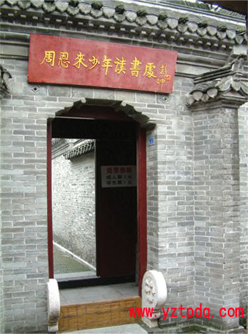 周恩來少年讀書處位于揚(yáng)州市寶應(yīng)縣城水巷口3號(hào),原為周恩來外祖父陳沅的宅第。整個(gè)建筑為明清風(fēng)格,占地700平方米,建筑面積500平方米,共有房屋十八間。讀書處人門朝北,門樓古樸莊重,門楣上方是原全國人大常委會(huì)副委員長(zhǎng)彭沖親筆題寫的“
