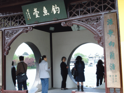 在中國,以“釣魚臺(tái)”命名的景點(diǎn)非常多,但揚(yáng)州的釣魚卻是眾多釣臺(tái)中體量最小,也是極富特色的一座。它是中國名亭建筑的典范,是中國園林“框景”藝術(shù)的代表作品。站在釣魚臺(tái)斜角 60 度,您可以在北邊的圓洞中看到五亭橋橫臥波光:而南邊的橢圓形洞中則正好可以看到巍巍白塔。這一景象一彩一素,一橫一臥,真是堪稱絕妙。這里也是外地游客到揚(yáng)州一定要留影的地方。那洞中借景的畫面正好對應(yīng)了“三星拱照”的名稱。