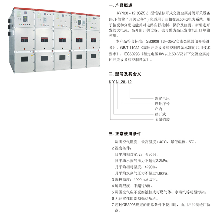 KYN28-12 型鎧裝移開式交流金屬封閉開關(guān)設(shè)備