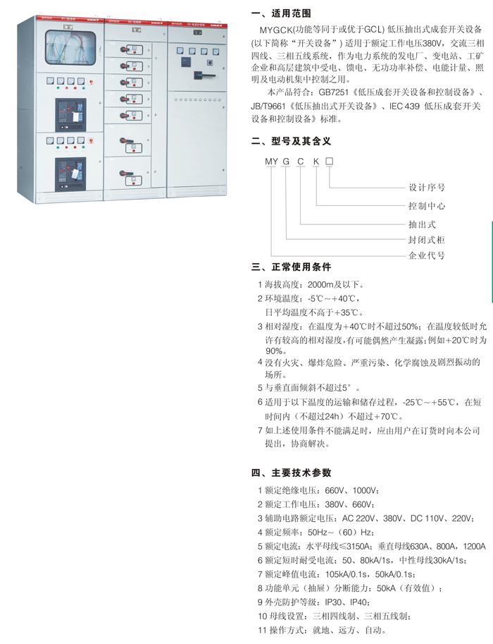 MYGCK型低壓抽出式成套開關(guān)設(shè)備